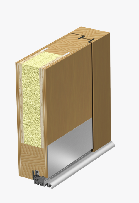 - Türblatt aus mehrschichtiger Platte, verstärkt mit Massivholz Rahmen und integrierten Stabilisatoren gegen Verzug, PUR-Konstruktionskern.